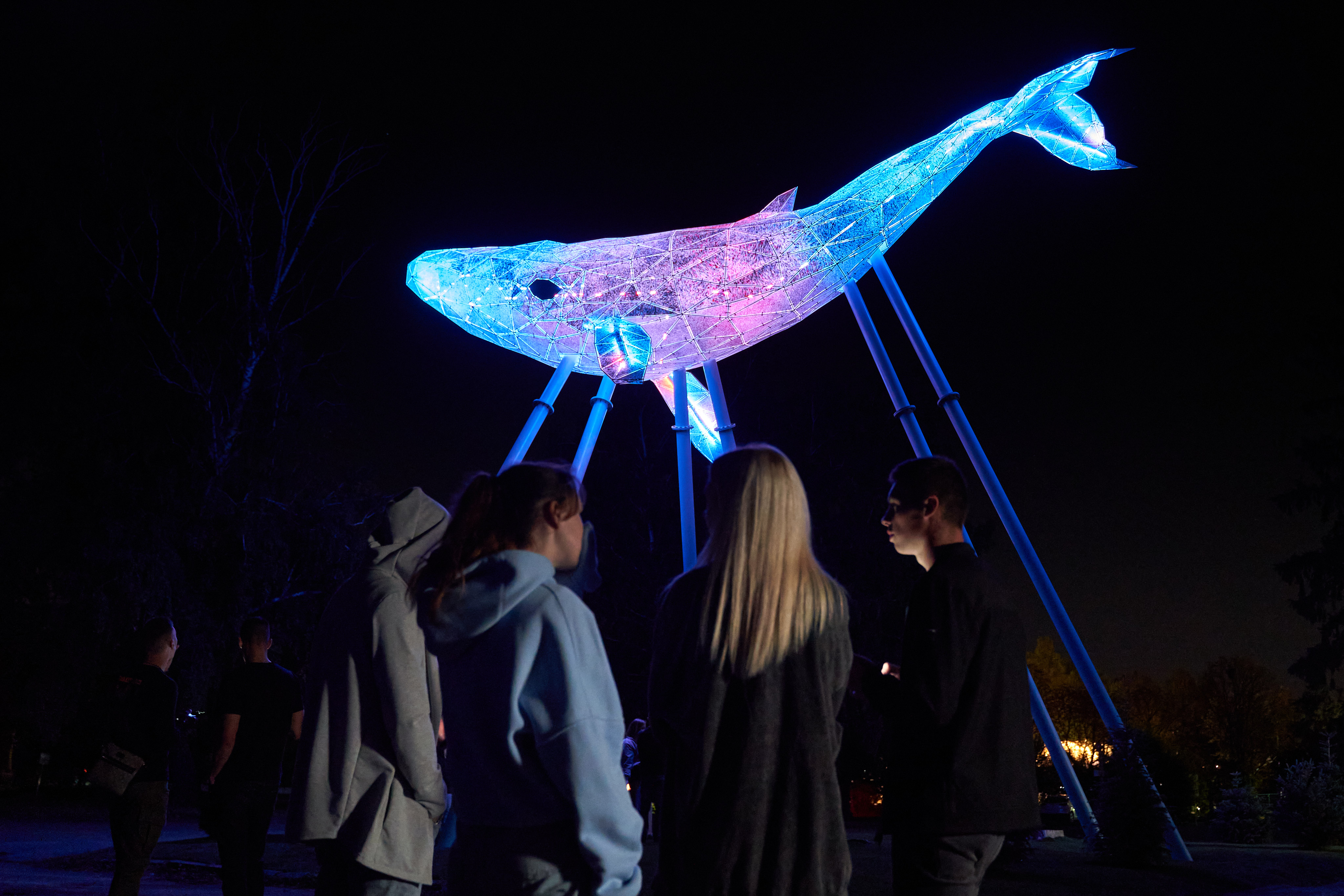 When the lights suddenly go out in Kyiv, the city doesn’t disappear – it changes shape. The outlines of buildings grow quieter, windows go dark, and the familiar signs stop setting the rhythm of the streets. In moments like these, you can hear what usually gets lost in the daytime noise: wind in the treetops, footsteps on wet asphalt, the distant rumble we’ve learned not to name out loud. And it’s precisely then that the Kyiv Whale can light up – not as a decorative whim, but as a sign that we are still able to speak about the future.
