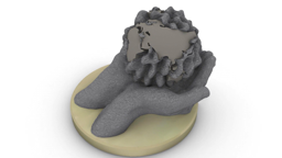 The sculpture began with a physical gesture: a 3D scan of real hands. These hands were then reconstructed and refined in digital modeling, becoming the structural base of the piece.