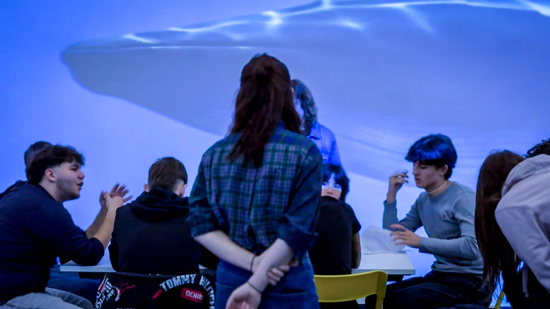 In the morning, we met with around 80 high school students from artistic and scientific backgrounds. Rather than a traditional lecture, the session became an open dialogue. We presented the environmental challenges behind Posidonia Art Reef, the scientific framework, and the idea of an underwater museum co-created with the community.